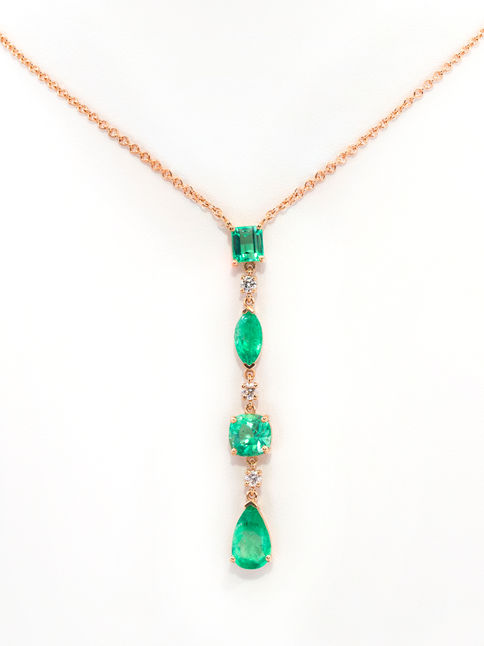 Elegant Emerald Necklace: Four Natural Emeralds in Rose Gold and Diamonds