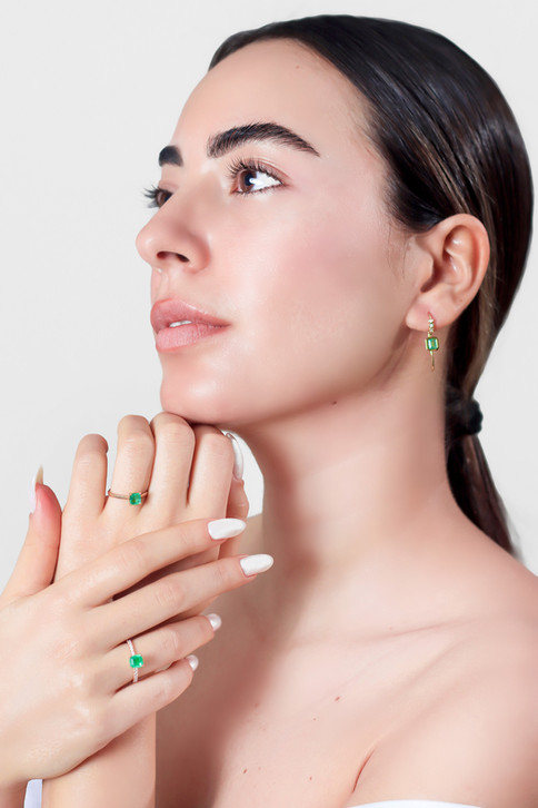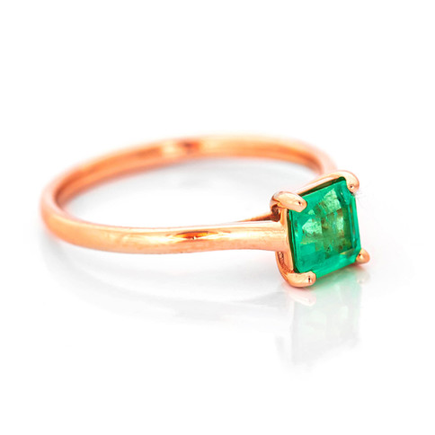 Colombian Emerald Jewelry | Emerald Gold Ring Solitaire | Featuring a Natural Electric Green Tone Emerald of 0.57 Carat Weight mounted in a Rose Gold Prong Set.