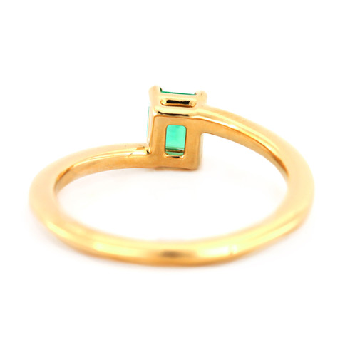 Natural Colombian Yellow Gold Emerald Ring| Natural Colombian Emerald Gold Ring | Featuring a very Clean Rectangle Shape Emerald of 0.55 Carat Weight with a Vibrant Blueish Green Tone.