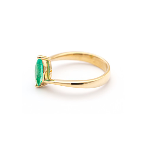 Marquise Colombian Emerald Ring in 14k Solid Yellow Gold