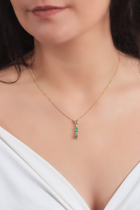 Multiple Colombian Emerald Pendant in Yellow Gold: Colombian Emerald Jewelry | Featuring Three Fancy Light Green Tone Emeralds | Set in a 14K Yellow Gold Chain.